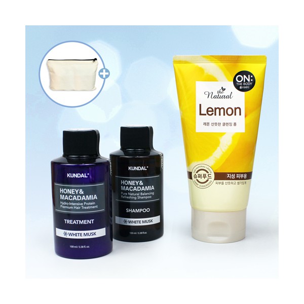 쿤달 샴푸+트리트먼트 + LG생활건강 온더바디 클렌징폼 120g + 에코파우치