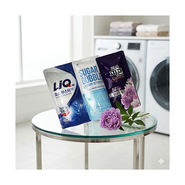 세탁세제 3종세트 애경 리큐 + 슈가버블 세탁세제 + 피죤 섬유유연제 + 끈케이스 + 케이스 변경 가능