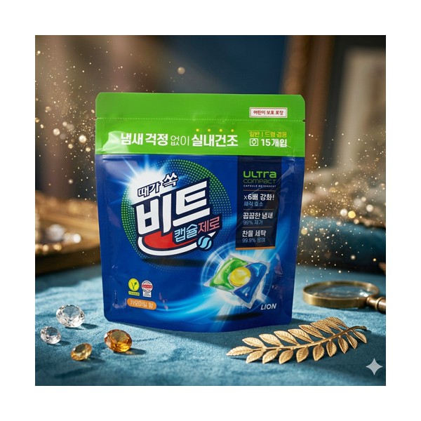 • 때가 쏙 비트 냄새제로 캡슐세제 15개입 + 종이케이스 추가 별도 문의 스티커 제작 및 부착 별도문의