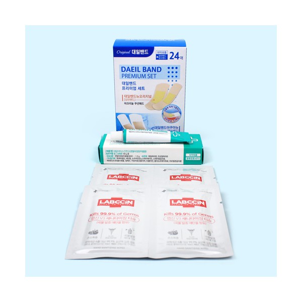 | 기타사항 | 대일밴드 프리미엄 기획 24매세트 (오리지널 표준8대형4+아쿠아뉴 표준8대형4) + 닥터스킨 연고 + 랩신 손소독티슈 4개 + 끈케이스 스티커 제작 및 부착 별도문의 |