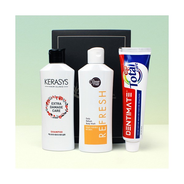 | 기타사항 | 케라시스 샴푸 + 샤워메이트 바디워시 + 크리오 덴티메이트 뉴 토탈케어 150g + 종이케이스 스티커 제작 및 부착 별도문의 |