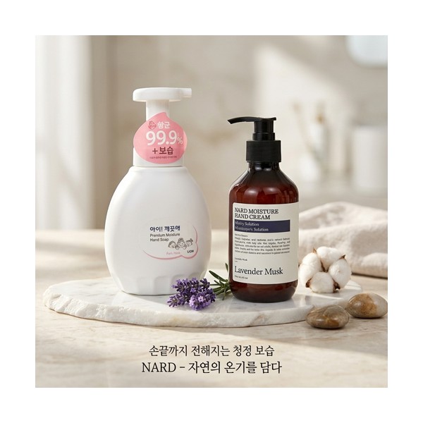 | 기타사항 | 핸드워시 아이깨끗해 450ml + Nard 나드 핸드크림 280ml + 끈케이스 + 케이스 변경 가능 케이스 이미지 변경 가능, 상세페이지 참조 (무지케이스 / 어려운이웃 복지사각 / 치매예방 / 금연홍보 / 슬기로운 안전생활) 스티커 제작 및 부착 별도문의 케이스 실크1도인쇄 별도문의 |
