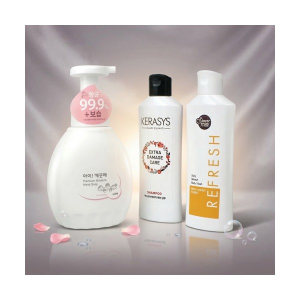 | 기타사항 | 핸드워시 아이깨끗해 모이스처 450ml + 캐라시스 샴푸 + 애경 샤워메이트 바디워시 + 끈케이스 + 케이스 선택 가능 스티커 제작 및 부착 별도문의 케이스 실크1도인쇄 별도문의 |